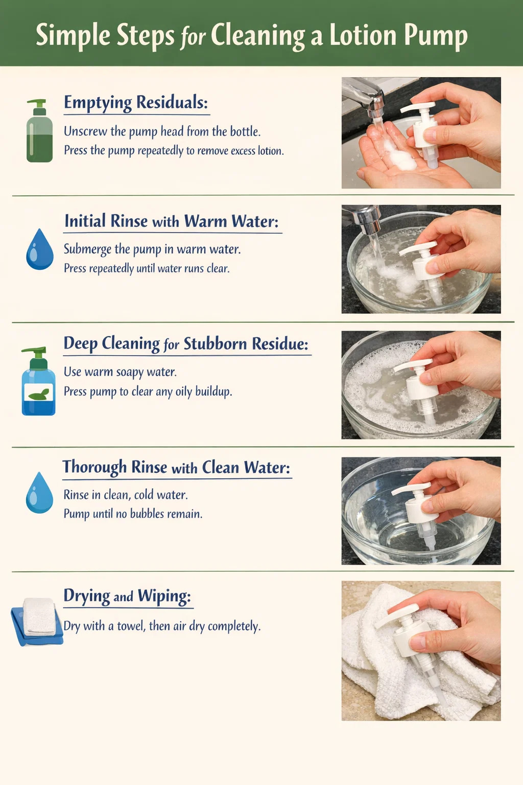Die Reinigung einer Lotionspumpe ist eigentlich ganz einfach. Mit der richtigen Methode können Sie Produktreste leicht entfernen, um Sauberkeit zu gewährleisten und Verstopfungen bei der späteren Verwendung zu verhindern.